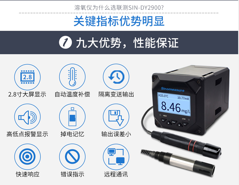 SIN-DY2900熒光法溶解氧儀是一款智能在線化學(xué)分析儀器,廣泛應(yīng)用于火電、化工、化肥、冶金、環(huán)保、制藥、生化、食品和自來水等行業(yè)中的溶解氧、飽和度和溫度的連續(xù)監(jiān)測(cè)。由于熒光法溶解氧儀采用熒光法測(cè)量溶解氧,測(cè)量時(shí)不會(huì)產(chǎn)生氧消耗,不存在干擾,不用極化,不光在復(fù)雜工況下有良好的表現(xiàn),熒光帽設(shè)計(jì)壽命可達(dá)一年以上,大大降低了維護(hù)成本。