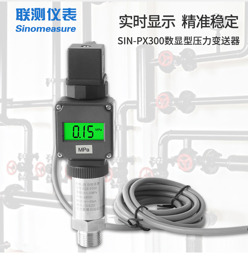 SIN-PX300型數顯壓力變送器采用無縫焊接結構,可批量化生產,經濟、可靠,具有良好的適應性,可應用于各種復雜的環境,該產品輸出形式多樣,壓力接口可提供定制,滿足您的使用需求。同時數顯壓力變送器帶有現場顯示功能,能夠更加直觀的顯示現場的壓力波動情況。廣泛應用于工業自動化設備配套以及石油、化工、冶金、電力等控制領域。