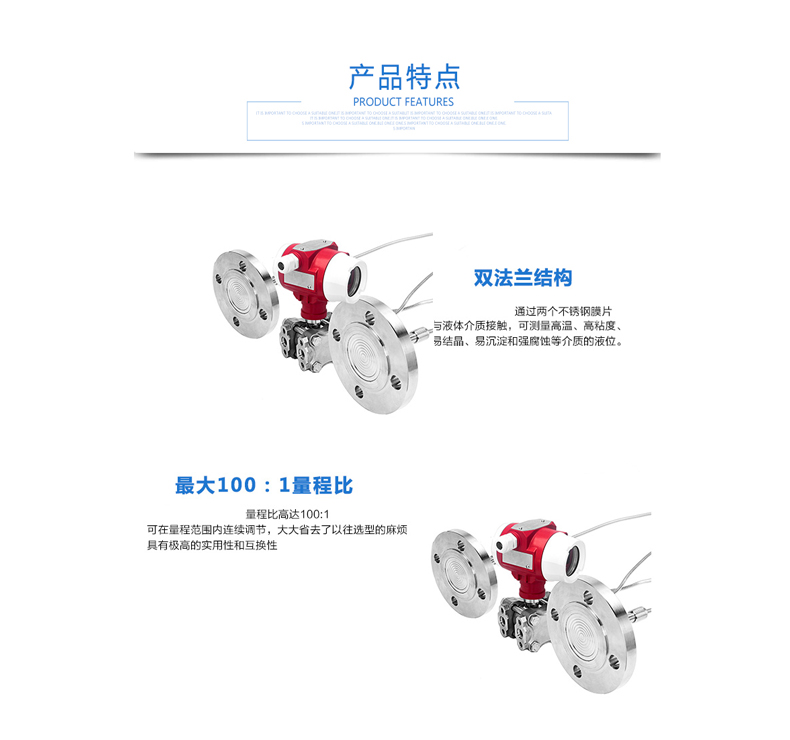 SIN-2051DP雙法蘭差壓液位變送器是一種為避免被測介質(zhì)直接作用于變送器的遠(yuǎn)傳隔離膜片接觸而采用的差壓式變送器(結(jié)構(gòu)測量法)。